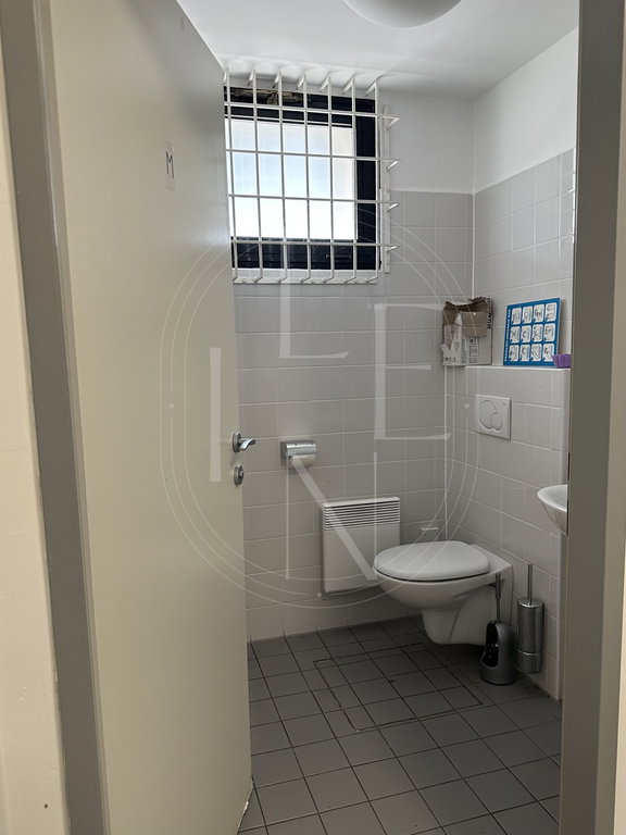 Ima ločene sanitarje - moški in ženski WC, kuhinjo, dve shrambi in trezor v kletnih prostorih. Pred poslovnim prostorom so na voljo parkirni prostori za stranke.